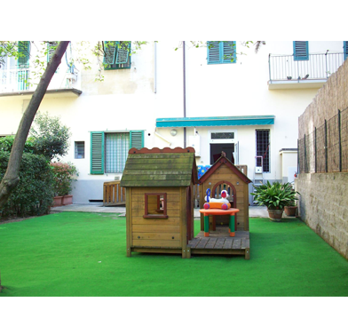 benessere. Il giardino è inoltre attrezzato con varie strutture per il gioco di movimento (tricicli), la sabbiera,